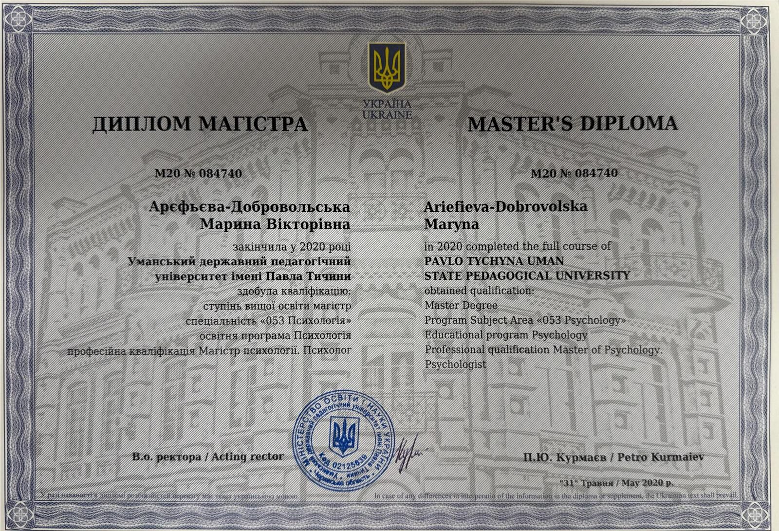 Параллельно я получила второе высшее образование — в 2020 году закончила университет, став магистром психологии.